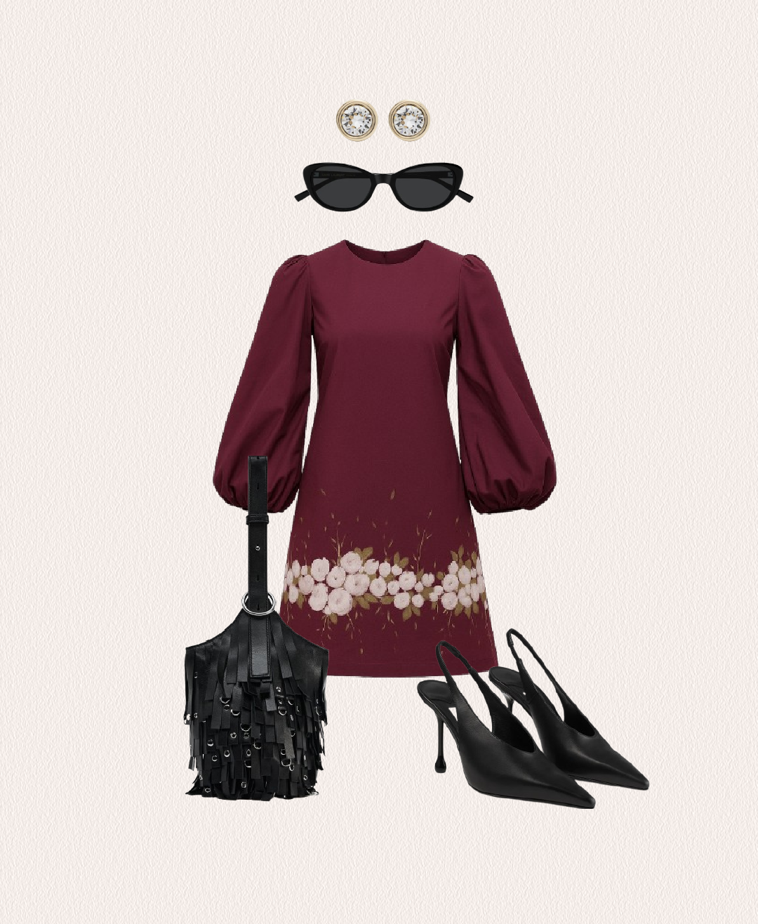FIT. Vestido mini con silueta entalegada, mangas globo con ajuste elástico en puño.