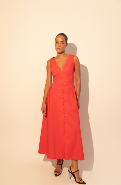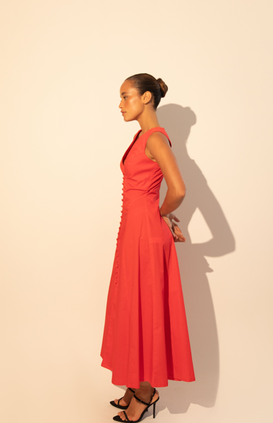 INSPO. Inspirados en el rojo intenso de las amapolas, estos diseños capturan la pasión y la fuerza vital que emana de la flor. Este diseño fue presentado en el BFW2025.